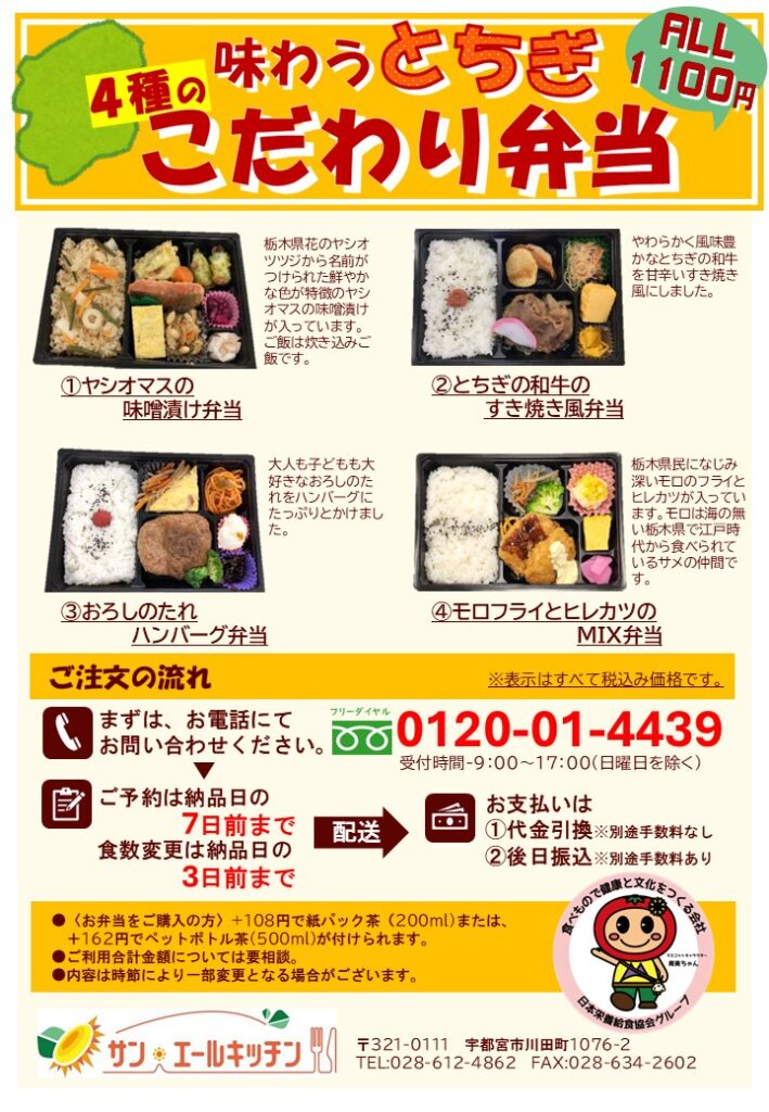 栃木らしいおかずが入ったお弁当や行楽向けのお弁当、定番の幕の内弁当など様々なお弁当をご用意しています。詳しくはお弁当チラシをご確認ください。
