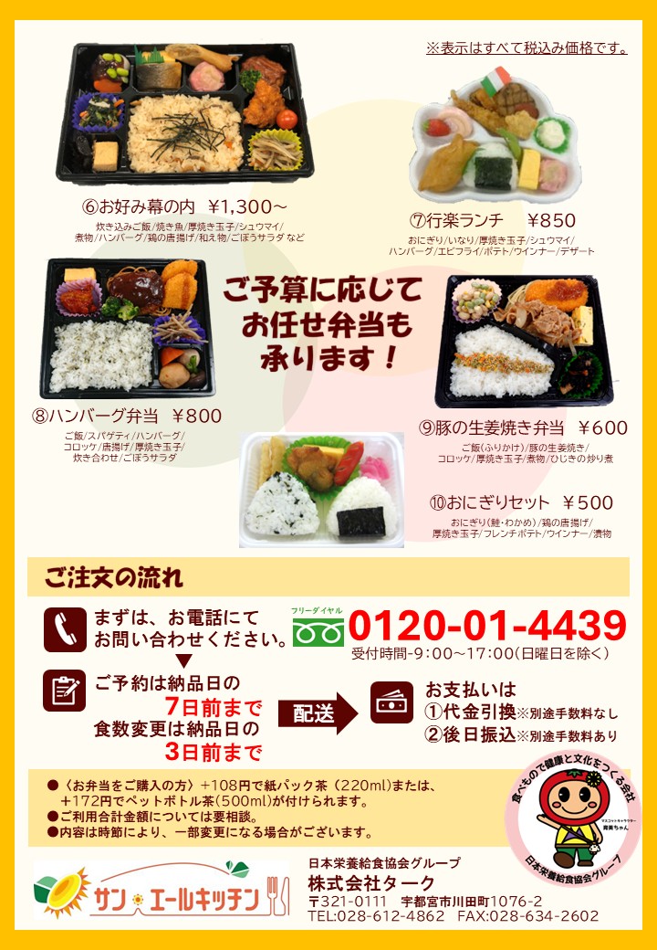 (お弁当の大まかな数量が決まり次第、お早めにご連絡いただけますと助かります。)